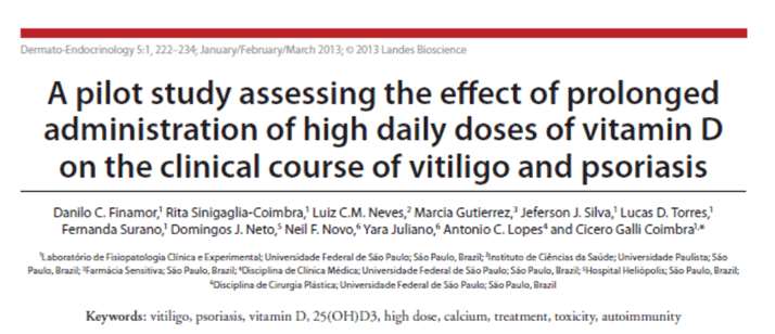 No primeiro trimestre de 2013, o Presidente do Instituto e os pesquisadores associados publicaram o primeiro artigo científico sobre o tratamento de doenças autoimunitárias com altas doses de vitamina D, no qual consta o apoio financeiro da Brazil Foundation. A publicação foi amplamente divulgada em páginas especializadas no assunto devido ao seu ineditismo. O trabalho intitulado "A pilot study assessing the effect of prolonged administration of high daily doses of vitamin D on the clinical course of vitiligo and psoriasis" foi publicado na revista científica Journal of Dermato-Endocrinology, volume 5, fascículo 1, páginas 222-234.